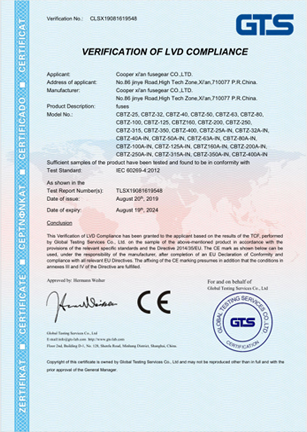 產(chǎn)品符合IEC60269-4/GB13539.4,并獲取CE認證
